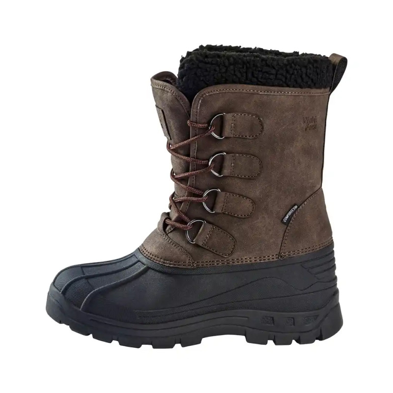 Core Unisex termozābaki no WALD&FORST ir silti ziemas zābaki Kanādas zābaku stilā. Ūdensnecaurlaidīgā konstrukcija, kas izgatavota no sintētiskās ādas uz stulma ar Comfortex® membrānu un gumijas galošu, padara to par ideālu zābaku lietošanai sniegā un ledū. Noņemamais mākslīgās kažokādas termo oderējums nodrošina labu izolāciju un uztur jūsu kājas patīkami siltas. 4 cilpu šņorēšana. Neslīdoša gumijas protektora zole.