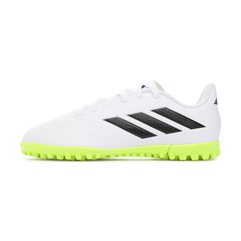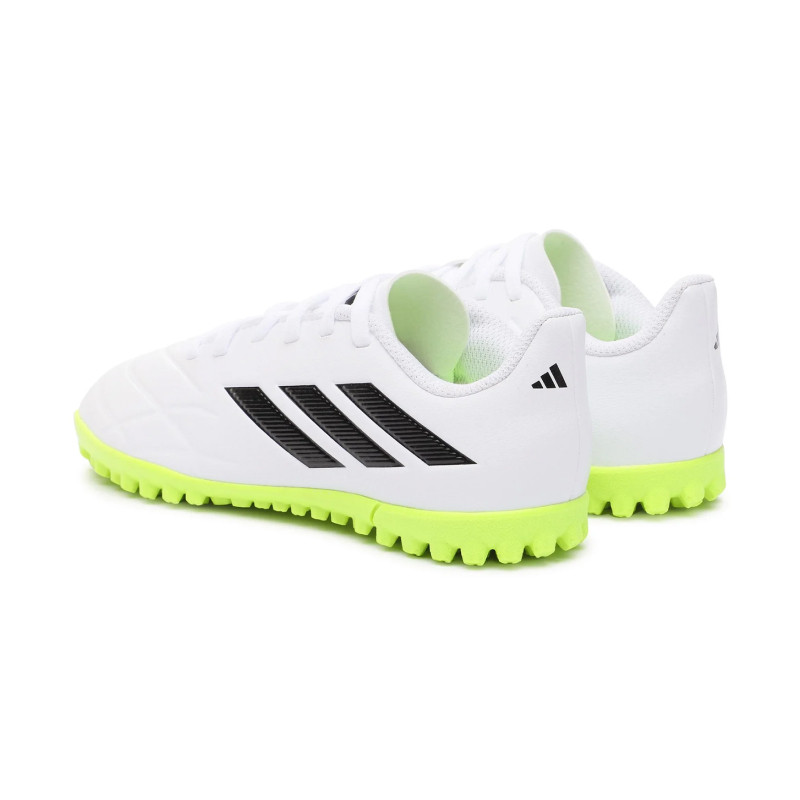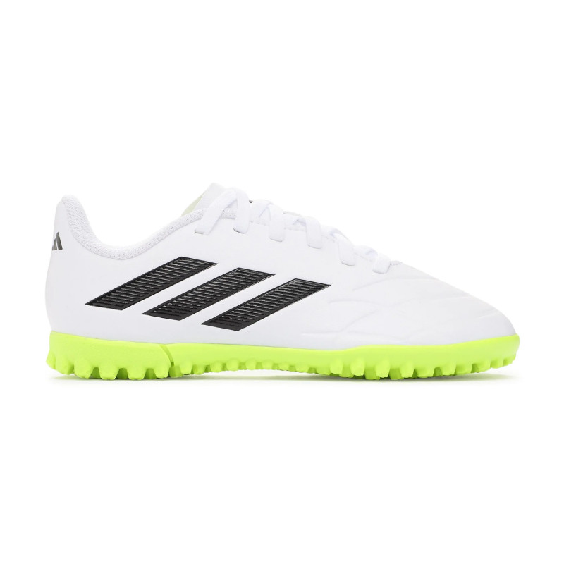 Klasiski un ērti Adidas futbola apavi. Uzvelkot adidas Copa Pure apavus, viss plūst. Šie bērnu apavi ir radīti, lai sekotu jūsu futbola tempam, un tiem ir mīksta sintētiska virsa, kas izceļas, pateicoties 3 svītrām. Radžota gumijas zole ļauj plūstoši pārvietoties pa sintētiskā zāliena laukumiem.