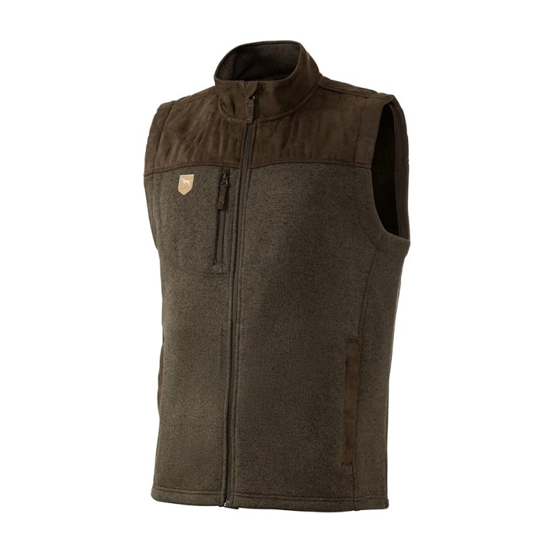 Klasiska veste ar stepētu zamšādas izskatu plecu daļā.