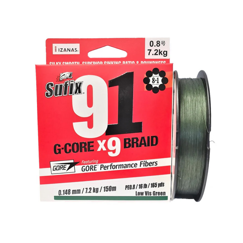 Sufix G-Core x9 turpina Sufix pīto auklu klāstu ar īpaši uzticamu veiktspēju. Ar nodilumizturīgu GORE® Performance Fiber kodolu un 8 precīzi pītām UHMPE šķiedrām, kas to ieskauj, G-Core x9 auklas konstrukcija nodrošina zemu stiepšanos un spēcīgāku vilkmes spēku. Zīdaini gludais pārklājums nodrošina lielu metienu attālumu.