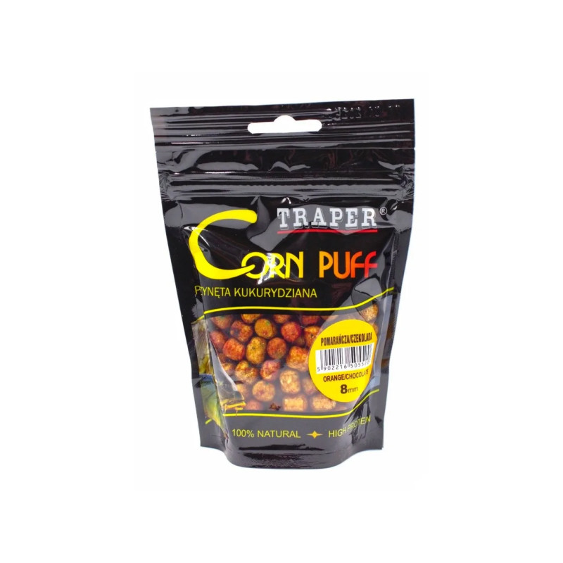 Šī spēcīgi smaržojošā peldošā ēsma piesaista zivis no liela attāluma. Pozitīvā peldspēja padara šo ēsmu īpaši efektīvu, makšķerējot uz lipīga, dubļaina, zāļaina dibena. Trapper Corn Puff darbojas apmēram 10-15 minūtes, pēc tam tas kļūst slapjš, iegūst zivīm ļoti patīkamu tekstūru, bet var nokrist no āķa. Tāpēc labāk ir nomainīt pufu un mest to no jauna.