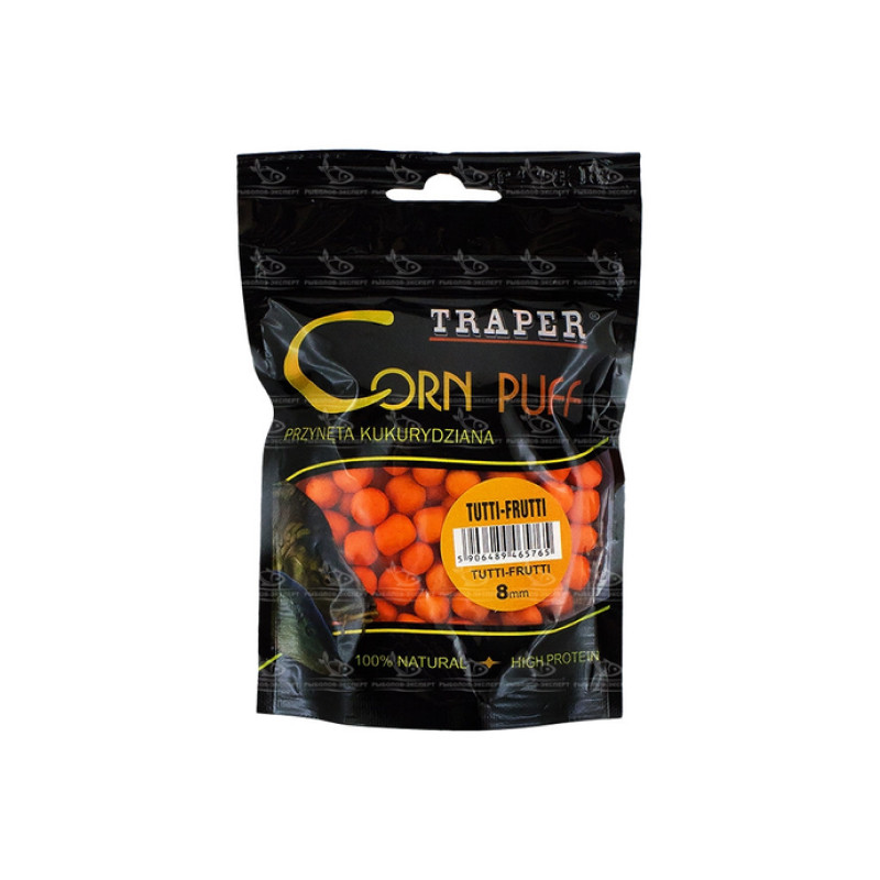 Šī spēcīgi smaržojošā peldošā ēsma piesaista zivis no liela attāluma. Pozitīvā peldspēja padara šo ēsmu īpaši efektīvu, makšķerējot uz lipīga, dubļaina, zāļaina dibena. Trapper Corn Puff darbojas apmēram 10-15 minūtes, pēc tam tas kļūst slapjš, iegūst zivīm ļoti patīkamu tekstūru, bet var nokrist no āķa. Tāpēc labāk ir nomainīt pufu un mest to no jauna.