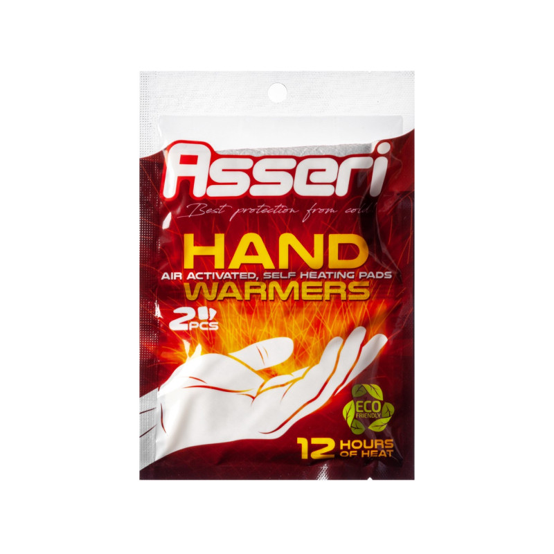 Sildošie spilventiņi rokām Asseri. Iepakojumā 2 gab., Tiek aktivizēti saskaroties ar gaisu. Uztur rokas siltas. Var izmantot slēpošanas vai slidošanas laikā, medībās vai makšķerējot, kā arī jebkurā citā gadījumā, aktīvi atpūšoties ārā pie temperatūras zem nulles grādiem.