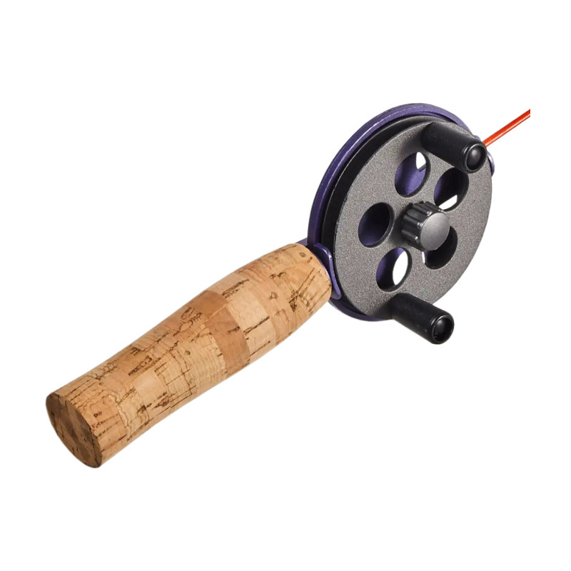 Skandināvu stila zemledus makšķere atvērta tipa spolēm.