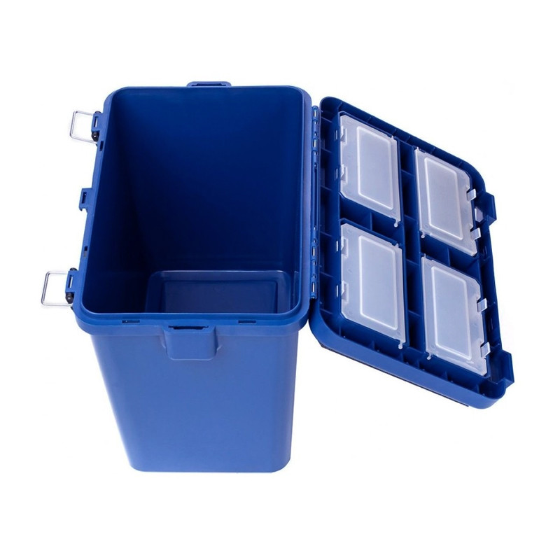 Ziemas kaste nodrošinās jūsu zvejas rīku drošību. Apakšējo daļu var izmantot zivīm, apģērbam vai citiem aksesuāriem. Maziem priekšmetiem kastes vākā ir 4 mazas kastītes. Ziemas kastē ir plata josta ērtai transportēšanai. Kaste ir izgatavota no triecieniem un sala izturīgas plastmasas (līdz -40 ° C). Kastes augšdaļa ir pārklāta ar mīkstu materiālu.