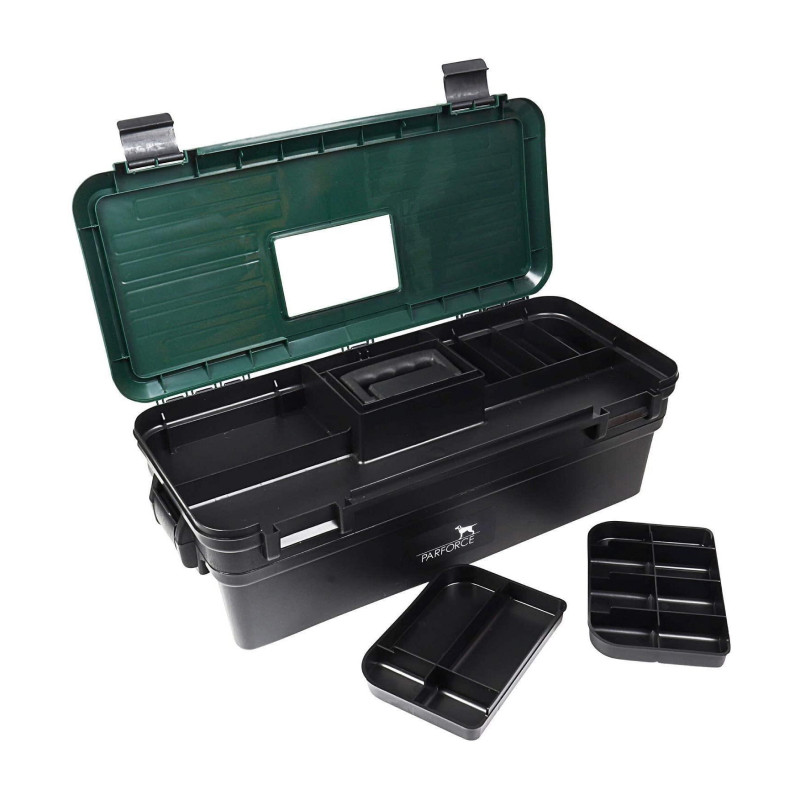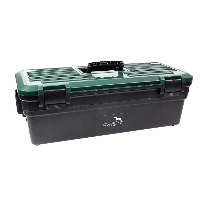 Ieroču kopšanas kastes un diapazona kastes apakšējā daļa nav sadalīta un tāpēc tajā var droši ievietot arī lielākus instrumentus. Kopā trīs padziļinājumi notur divus stobra un pamatnes gumijas stiprinājumus tik droši, ka attāluma kārbu var izmantot pat līdz nullei pistolē. Visa kaste ir izgatavota no izturīga, skābes izturīga polipropilēna. Diapazona kārbai ir IP65 aizsardzība, kas nozīmē, ka tā ir putekļu necaurlaidīga un aizsargāta pret ūdens strūklām.