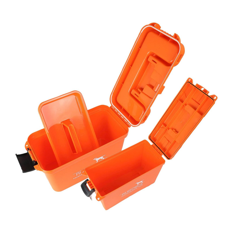 Parforce transportēšanas un munīcijas kastes ir ideāli piemērotas medību un automašīnu piederumu, instrumentu, suņu piederumu, munīcijas uc transportēšanai. Integrētais silikona blīvējums pasargā no ūdens šļakatām un putekļu iekļūšanas.Veidots no izturīgas polipropilēna plastmasas, tiek nodrošināts ārkārtīgi ilgs kalpošanas laiks.Tāpēc tos var droši lietot pat nelabvēlīgos apstākļos.Aprīkotas ar ērtu pārnēsāšanas rokturi, kastes ir ērti transportējamas.Iecirtumi vākā padara kastes stabilas.Tiem ir verama aizdare un divi caurumi piekaramo slēdzeņu piestiprināšanai (nav iekļauti komplektā).