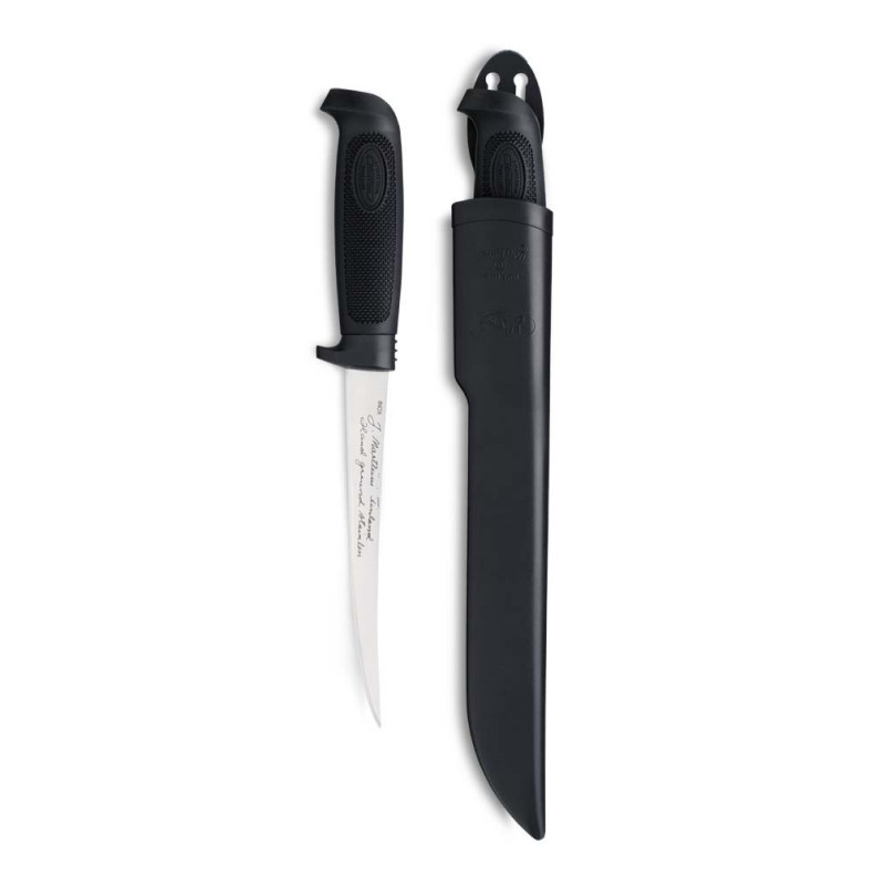 Labi pieguļošais gumijas rokturis un elastīgais nerūsējošā tērauda asmens nodrošina tīru fileju griezumu. Šāda izmēra asmens ir vispiemērotākais aptuveni 1 kg smagu zivju apstrādei.