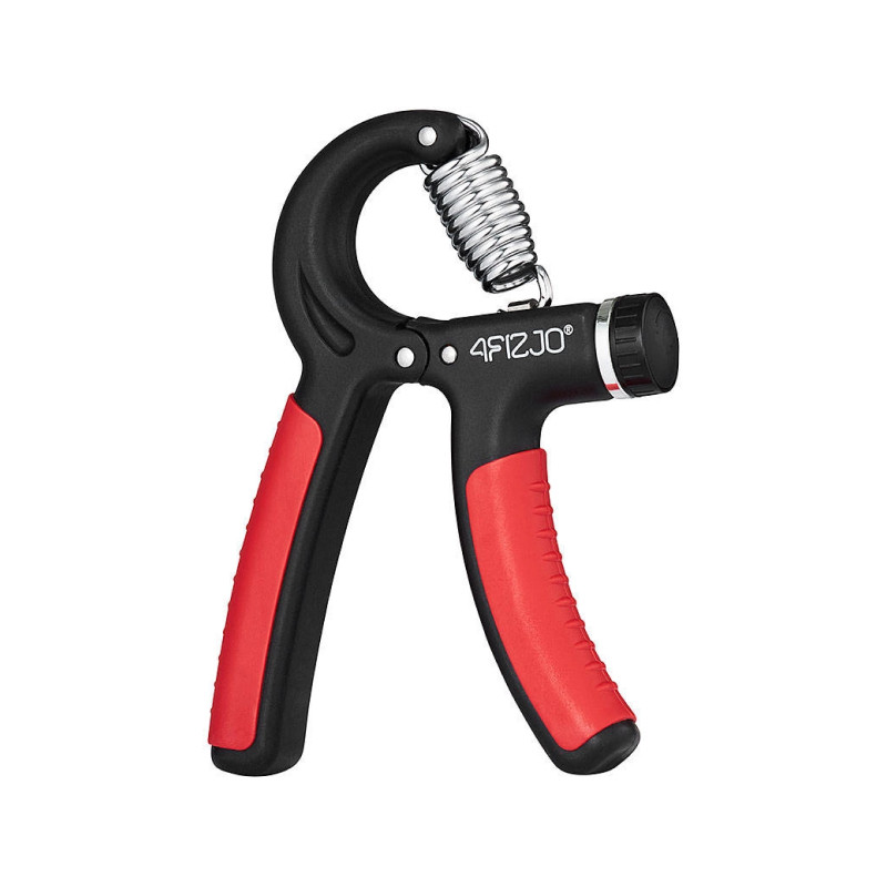 Zīmola 4FIZJO rokas trenažieris. Tā rokturi ir ergonomiski veidoti, lai mazie roku muskuļi netiktu pārslogoti un strādātu fizioloģiski. Rokturi ir aprīkoti ar neslīdošiem paliktņiem – tie nodrošina stingru satvērienu arī tad, ja treniņa laikā rokas ir nosvīdušas. Tam ir pretestības regulēšanas poga. Varat to pielāgot atkarībā no vajadzībām.