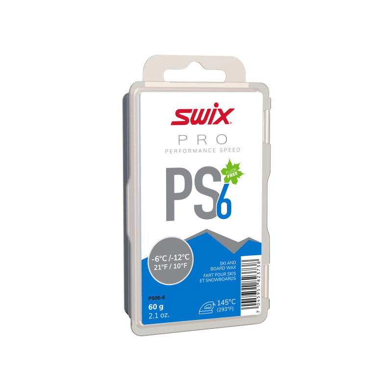 PS6 ir ļoti daudzpusīgs slīdošais vasks. Pielietojuma joma svārstās no pamatvaska sacīkšu produktiem līdz sacīkšu vaskam, kā arī kā pamatvasks aukstajām slēpēm. PS6 ir laba izturība un nodrošina lielisku slīdēšanu gan uz dabīgā, gan mākslīgā sniega. PS6 var izmantot kā sacīkšu vasku vienu pašu vai kā bāzes vasku pēdējiem vaska slāņiem. Ieteicamā vaskošanas gludekļa temperatūra: 145°C.