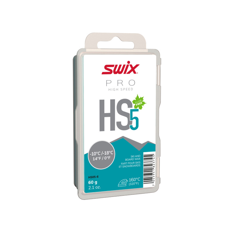 HS5 ir cietākais slīdošais vasks High Speed sērijā. High Speed (HS) ir īpaši izstrādāts jaunākiem braucējiem un ambicioziem atpūtas slēpotājiem. Visiem šīs sērijas vaskiem ir augsta veiktspēja un laba izturība. Tas padara tos par pieejamu iespēju gan sacensībām, gan treniņiem. HS5 ir lieliska izvēle aukstiem apstākļiem, pateicoties tā izcilajai izturībai un sausās berzes īpašībām. Tā ir lieliska izvēle kalnu slēpošanai, snovbordam un distanču slēpošanai. Neskatoties uz to, ka tas ir vasks aukstiem apstākļiem, tā kušanas temperatūra atvieglo uzklāšanu nekā daudzi līdzīgi vaski šajā kategorijā, nemazinot tā slīdēšanas īpašības. Svaigam sniegam, pārveidotam sniegam un mākslīgajam sniegam.
