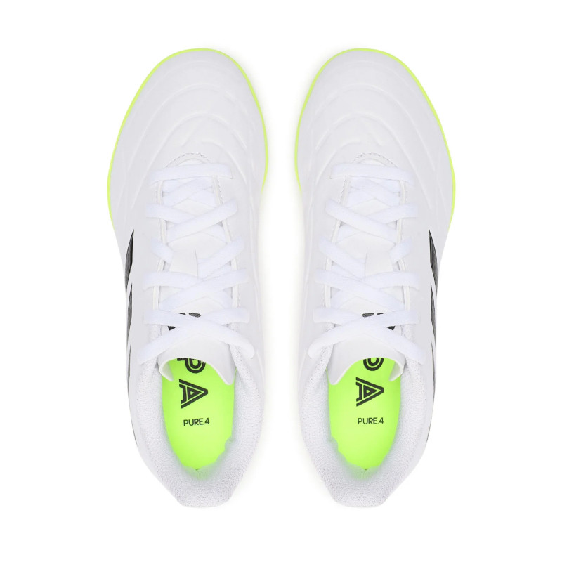 Klasiski un ērti Adidas futbola apavi. Uzvelkot adidas Copa Pure apavus, viss plūst. Šie bērnu apavi ir radīti, lai sekotu jūsu futbola tempam, un tiem ir mīksta sintētiska virsa, kas izceļas, pateicoties 3 svītrām. Radžota gumijas zole ļauj plūstoši pārvietoties pa sintētiskā zāliena laukumiem.