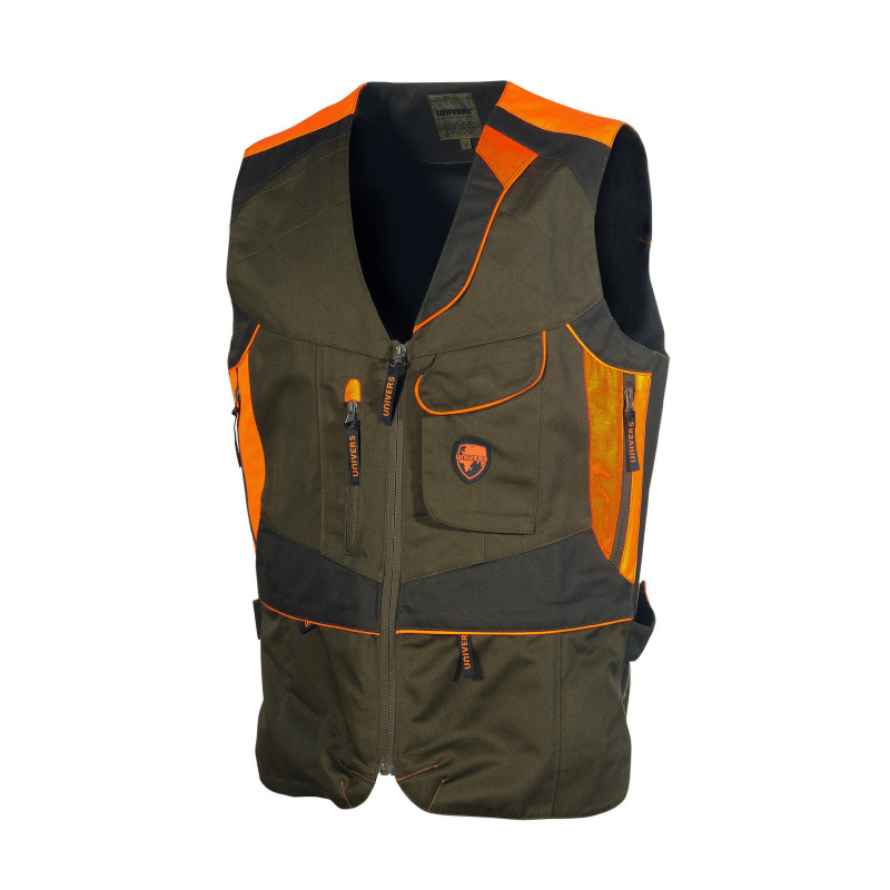 Kokvilnas maisījuma sarža medību veste ar kontrastējošiem elementiem,