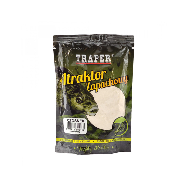 Smaržu piedeva Atractor Traper, lai uzlabotu ēsmas smaržu. Piemērots visu veidu karpu zivju ķeršanai. Piedeva ir pierādījusi sevi kā izcilu rezervuāros ar lielu zvejnieku blīvumu. 100 g iepakojums paredzēts 3-4 kg sausa maisījuma.