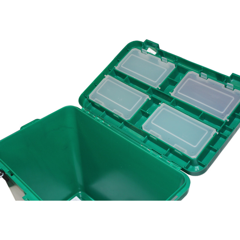 Ziemas kaste nodrošinās jūsu zvejas rīku drošību. Apakšējo daļu var izmantot zivīm, apģērbam vai citiem aksesuāriem. Maziem priekšmetiem kastes vākā ir 4 mazas kastītes. Ziemas kastē ir plata josta ērtai transportēšanai. Kaste ir izgatavota no triecieniem un sala izturīgas plastmasas (līdz -40 ° C). Kastes augšdaļa ir pārklāta ar mīkstu materiālu.