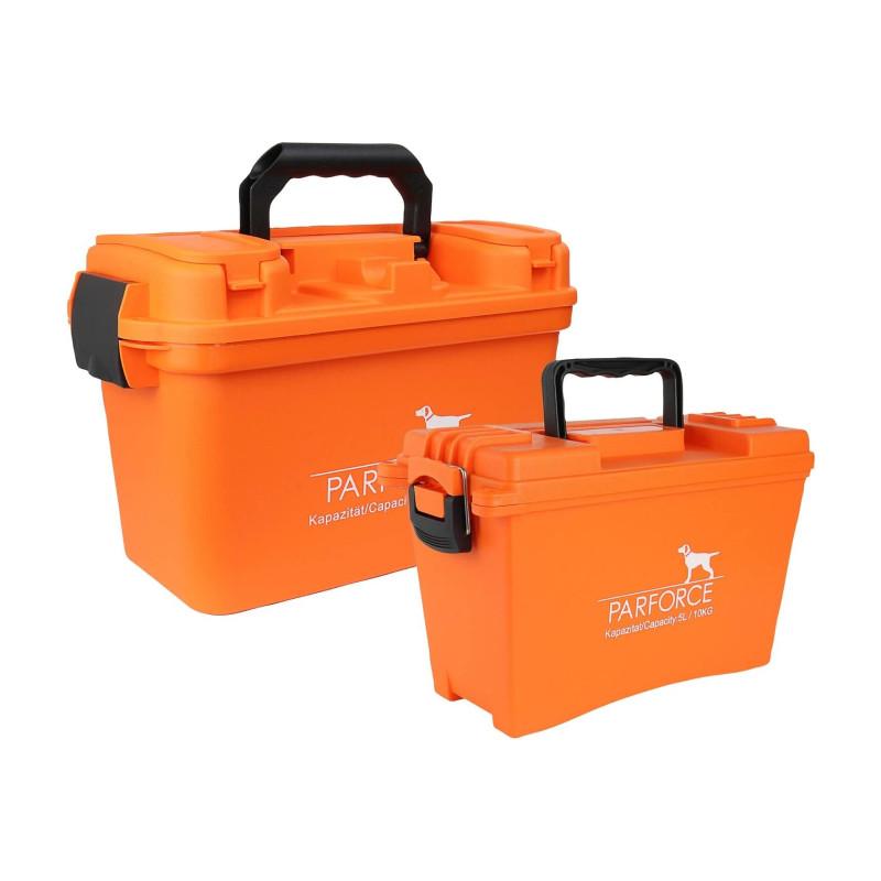 Parforce transportēšanas un munīcijas kastes ir ideāli piemērotas medību un automašīnu piederumu, instrumentu, suņu piederumu, munīcijas uc transportēšanai. Integrētais silikona blīvējums pasargā no ūdens šļakatām un putekļu iekļūšanas.Veidots no izturīgas polipropilēna plastmasas, tiek nodrošināts ārkārtīgi ilgs kalpošanas laiks.Tāpēc tos var droši lietot pat nelabvēlīgos apstākļos.Aprīkotas ar ērtu pārnēsāšanas rokturi, kastes ir ērti transportējamas.Iecirtumi vākā padara kastes stabilas.Tiem ir verama aizdare un divi caurumi piekaramo slēdzeņu piestiprināšanai (nav iekļauti komplektā).
