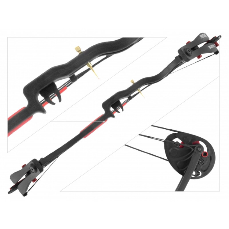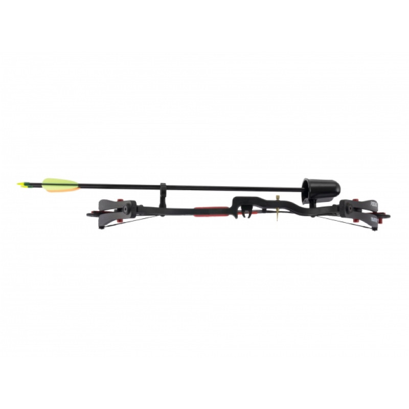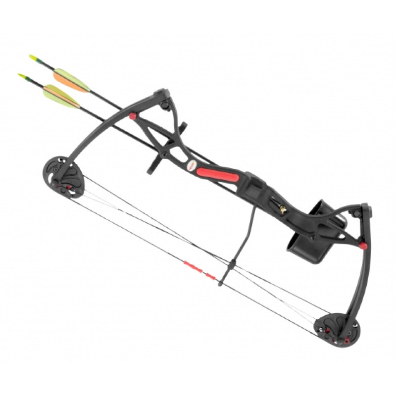 Buster Camo Compound loka komplekts ir mazs un kompakts loks, kas tiek komplektēts ar loku, 2 bultām, bultu trīci, rokas aizsargu un tēmēkli.