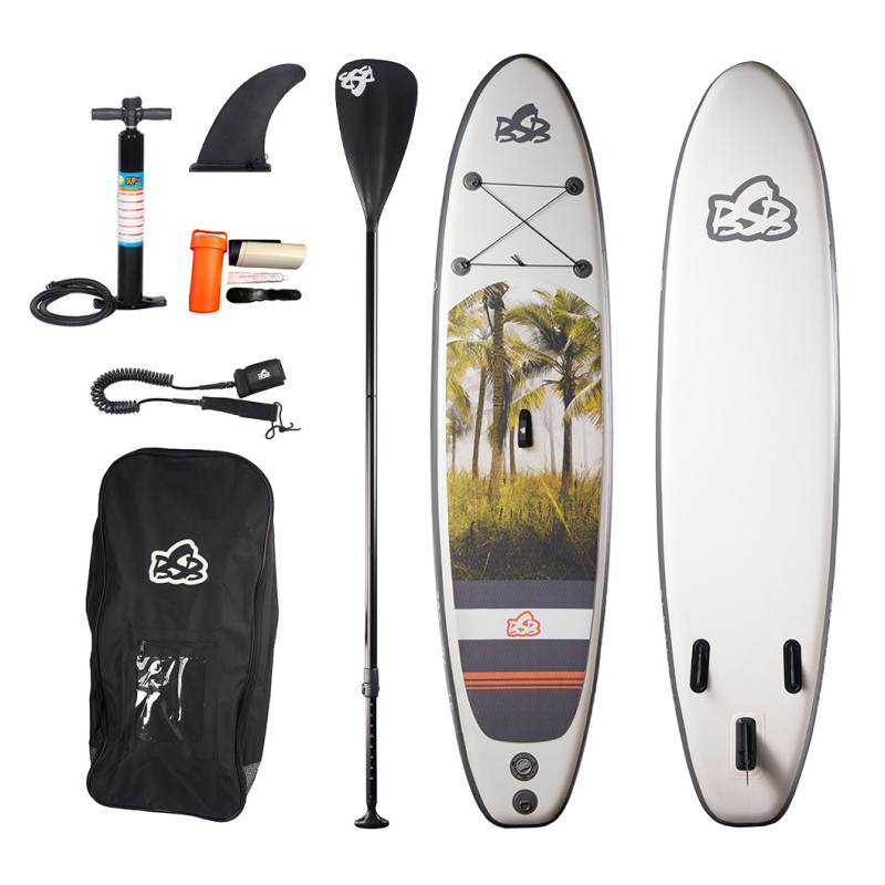 Komplektā ietilpst: SUP dēlis, saite, airis, soma, pumpis, remonta komplekts